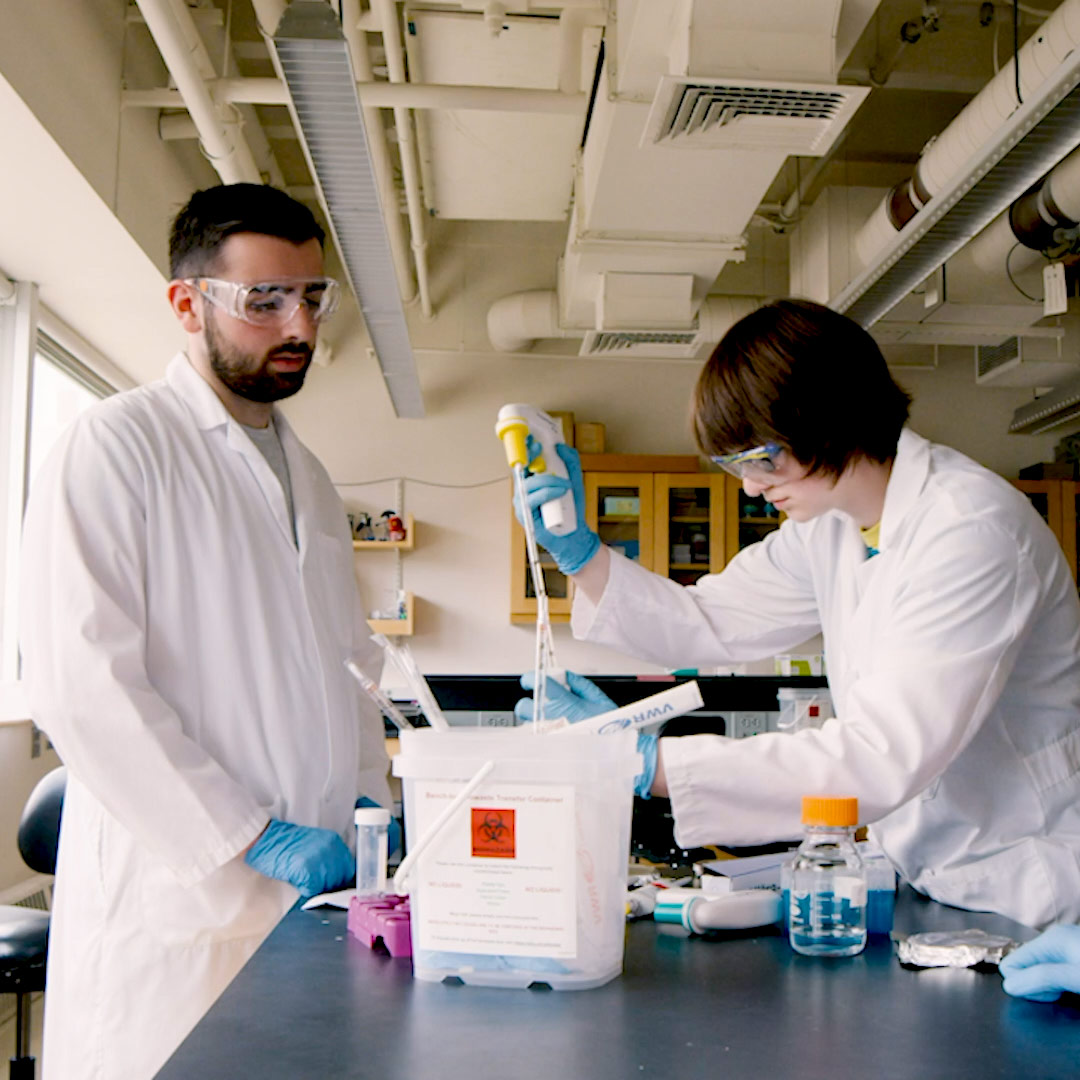 Two students work in an MIT lab