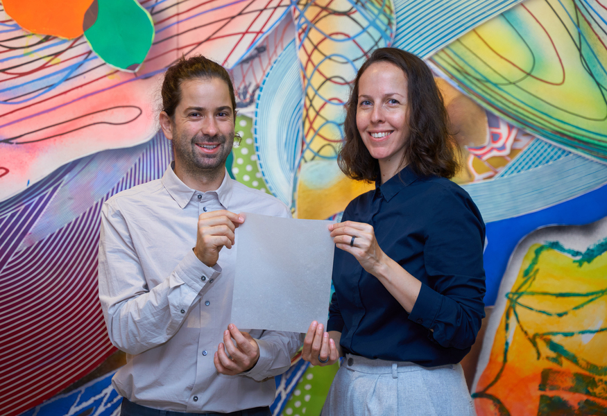 Paloma Gonzalez-Rojas SM ’15, PhD ’21 (right) and Jose Tomas Dominguez are the co-founders of Atacama Biomaterials. Photo: Jade Chongsathapornpong